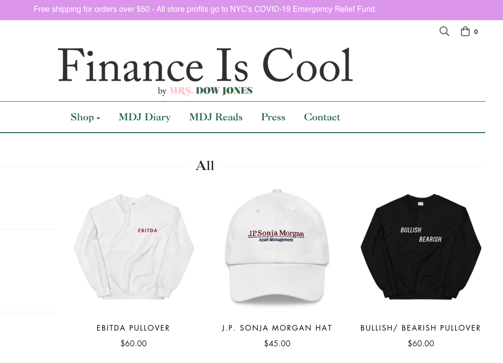 Branded by The Wall Street Journal as the “Financial Guru Millennials Listen To,” Haley Sacks, better known as Mrs. Dow Jones, has quickly amassed a media empire from her popular platform @MrsDowJones, a whip-smart, financial meme account created for the discerning millennial set. In response to the crisis, Sacks has pledged to donate 100% of all proceeds from her online shop to New York City Mayor Bill de Blasio’s COVID-19 Emergency Relief Fund. The fund is working to provide resources to the city’s heavily impacted communities, such as hourly workers, local businesses, and low-income families, to ensure they stay afloat during the crisis.